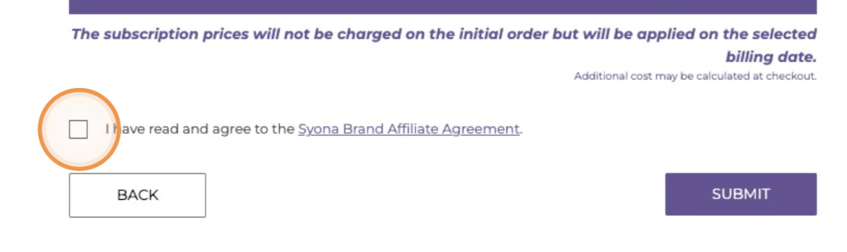 14. Review and accept the Brand Affiliate Agreements and click "Submit"