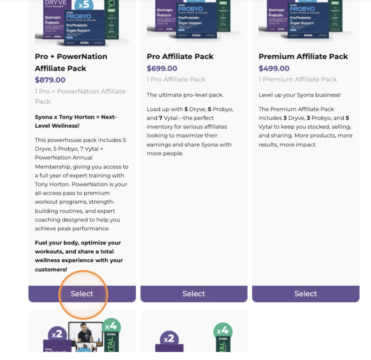 7. Select the enrollment package of your choice