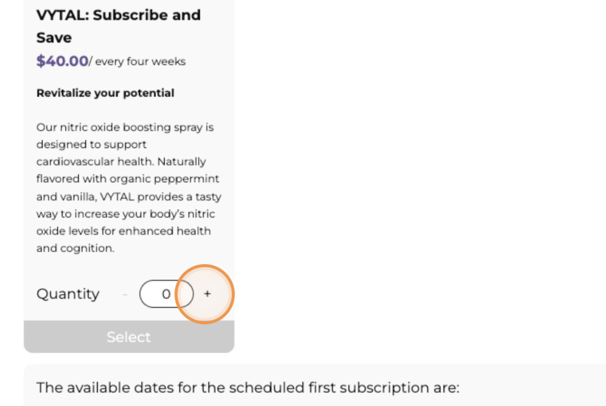 9. Choose your Subscribe and Save order and click "+" and click "Select" (optional)