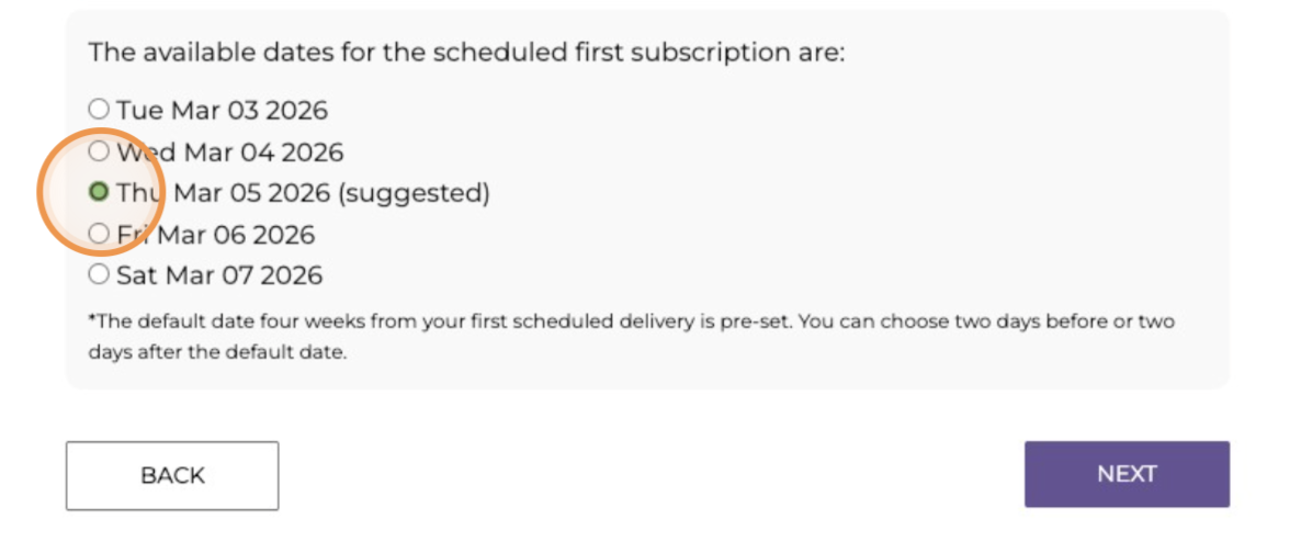 10. Select your preferred start date for your subscription and click "Next"
