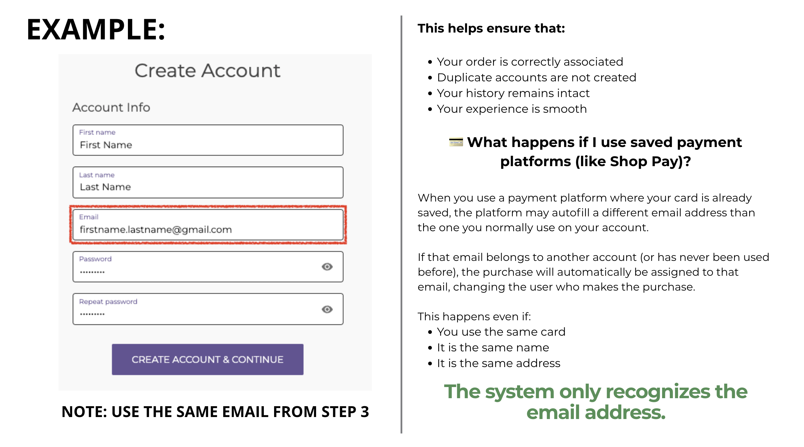 If you need more information, you can go to the following article: Why is it important to use the same email address during checkout?