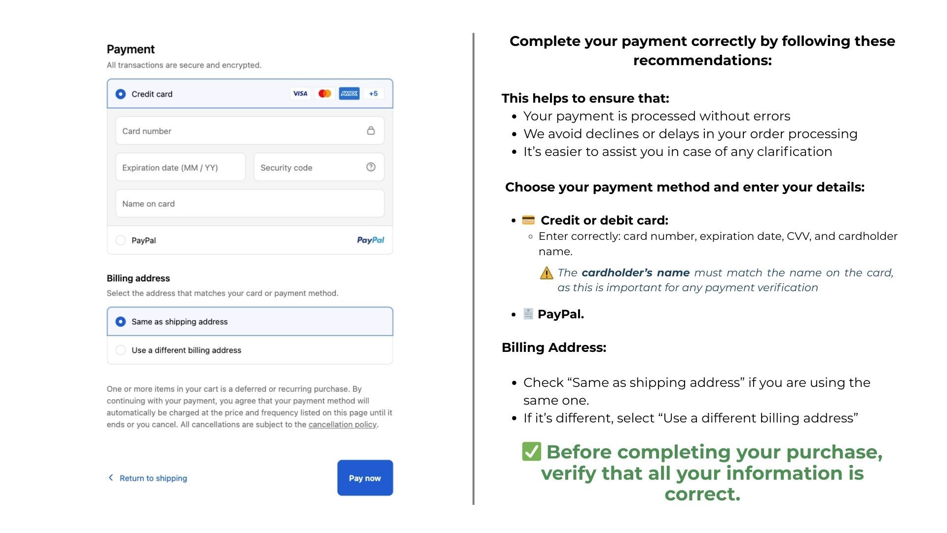 Before completing your purchase:
