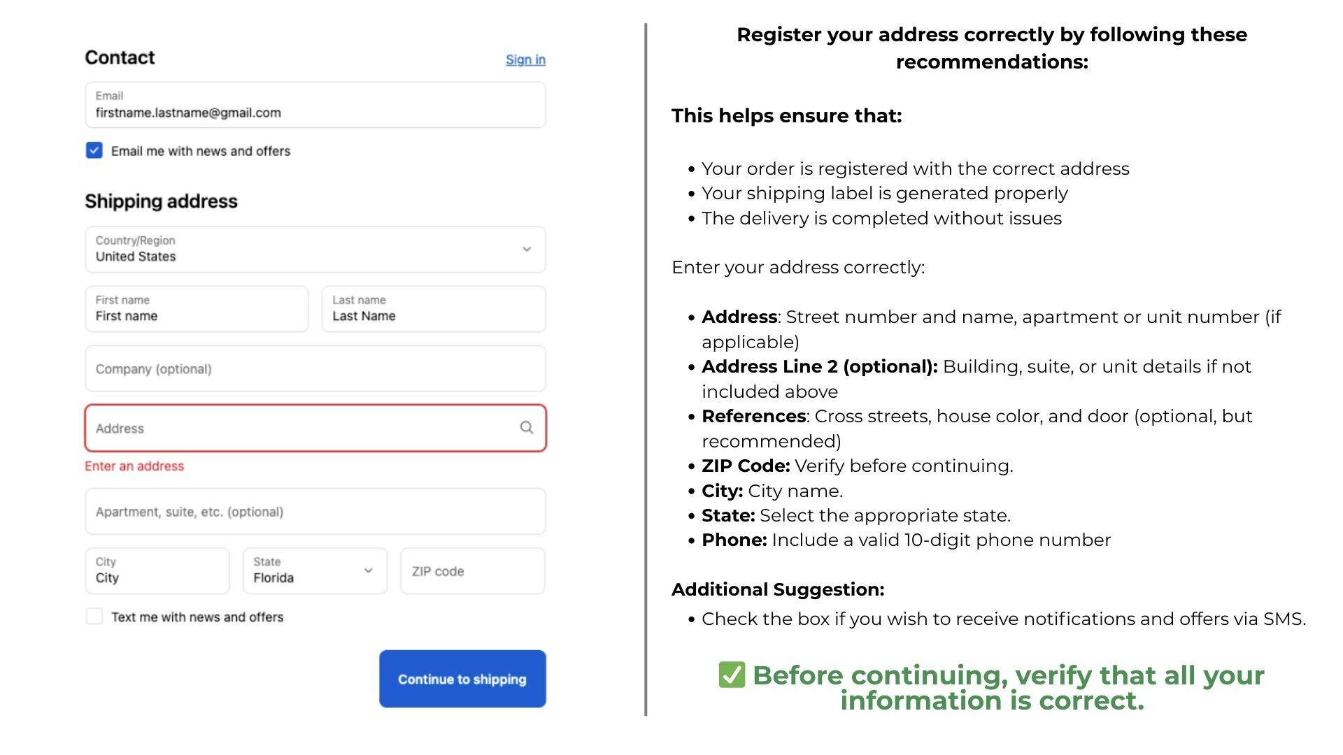 Then, fill in your shipping information and click “Continue to shipping.”