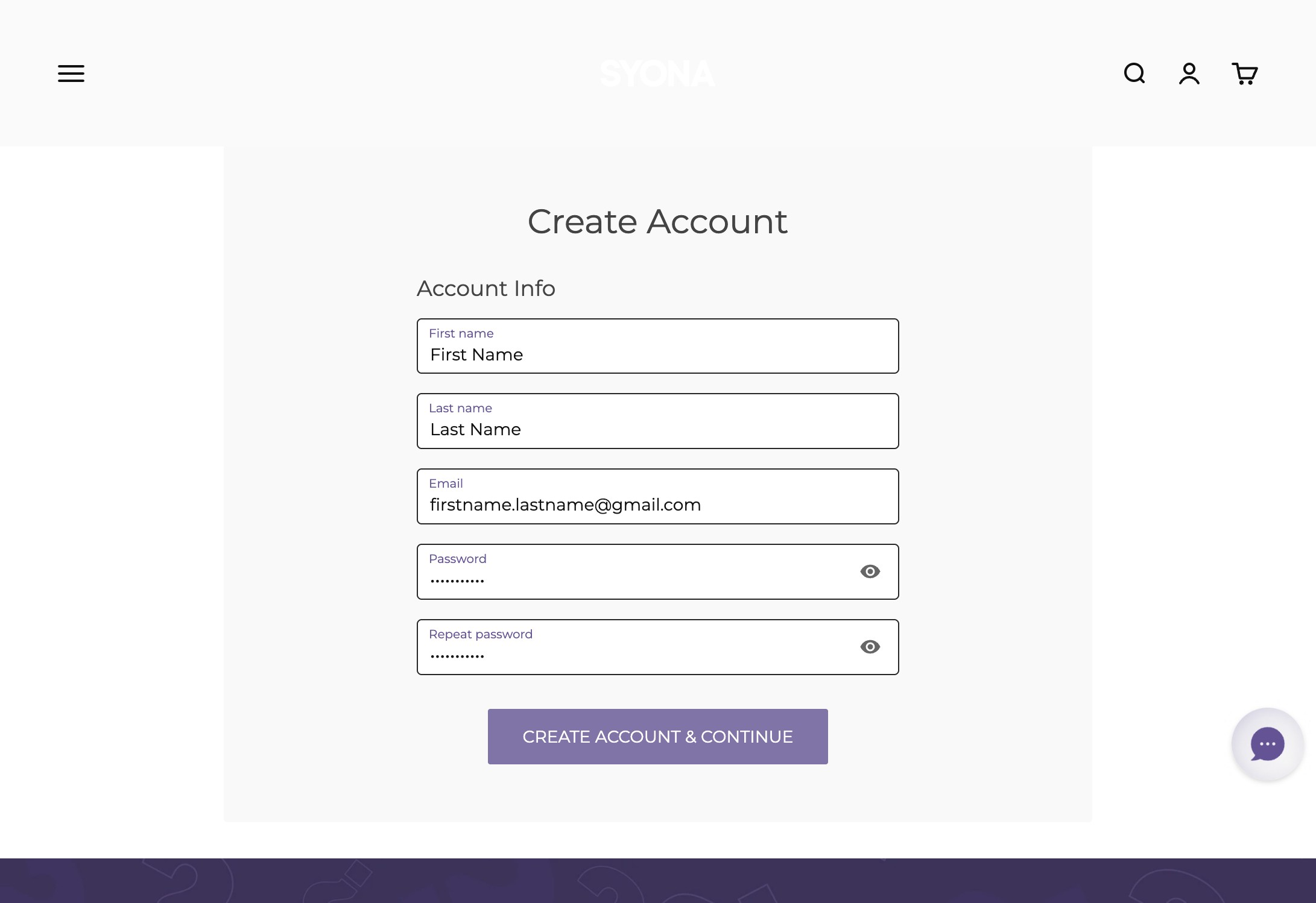 3. Fill out the information and click "CREATE ACCOUNT & CONTINUE"